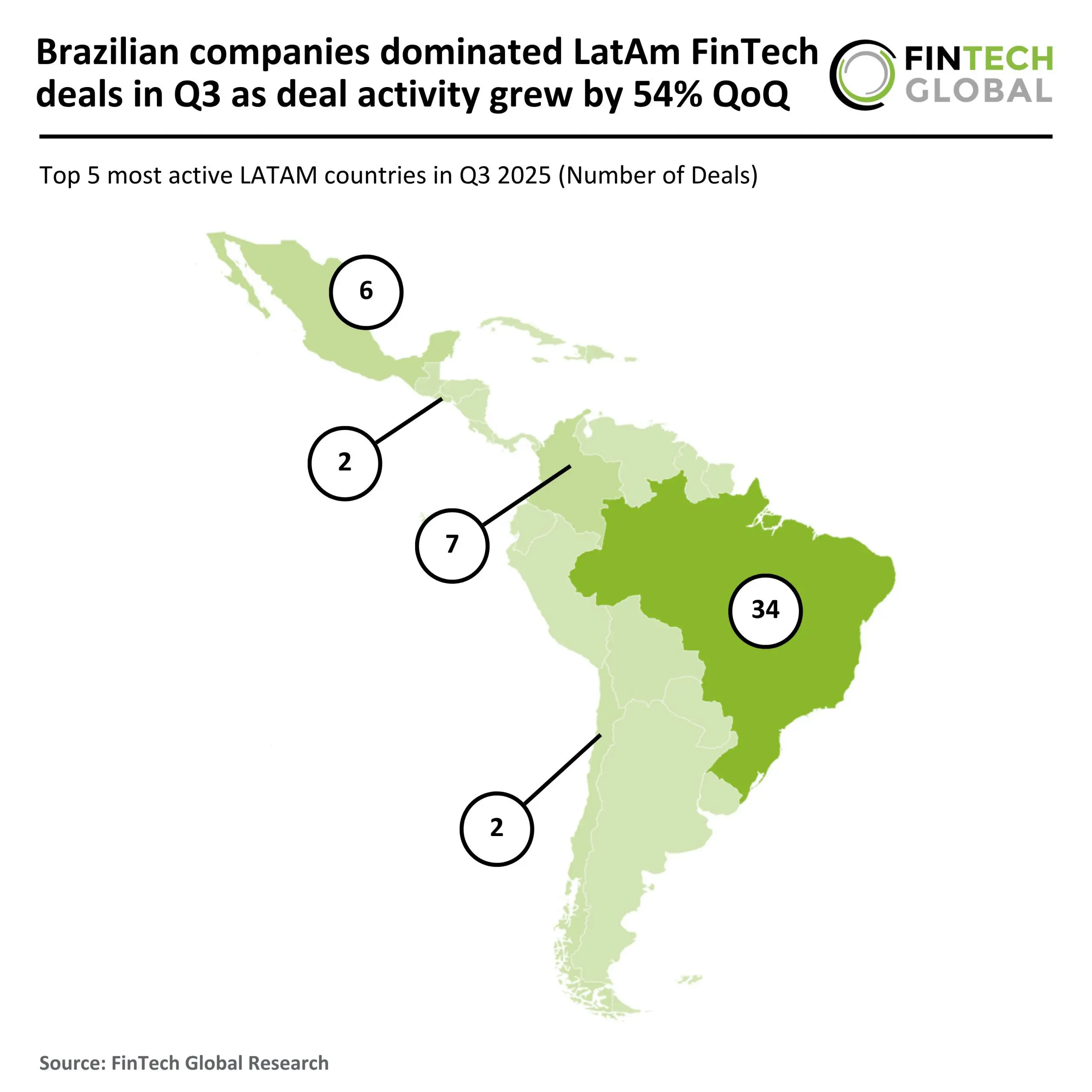 - LatAm FinTech deal activity grew by 54% QoQ in Q3